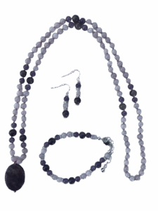 “Conscious Wave” Grey Jade, Strawberry Quartz, Black Obsidian, Desert Creek Petrified Agate