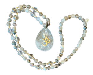 The significance of 108 beads is open to interpretation. At the highest level, 108 represents the nameless supreme that is beyond worldly existence. This number symbolizes the divine and sacred connections in our arts, sciences, mathematics, philosophies, and religions. In mathematics and sciences, there are numerous references to this auspicious number. For example, 108 is a multiple of the essential numbers 2, 3, and 4 as well as a product of 1, 2, and 3. Astrologically, the nine planets multiplied by the twelve signs of the sun of the zodiac is 108. The number also represents the relationship between our planetary home, the earth, and the everlasting sun. (Mala of the Heart~108 Sacred Poems, edited by Kate Vogt and Ravi Nathwani) Some believe there are 108 stages on the journey of the human soul, others believe enlightenment is attainable by taking only 108 breaths a day while in deep meditation. Another belief is based on our chakras, that there are 108 energy lines connecting to the heart, one of them being the path to self-realization. Some choose to recite their mantra in Sanskrit, the Sanskrit alphabet has 54 letters and each letter has a feminine aspect and a masculine aspect, totaling 108.