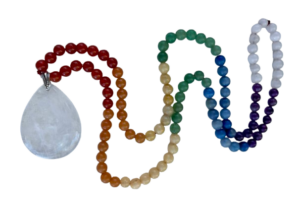 Chakra Mala: Carnelian, Aventurine, Amethyst, Jade, Crystal Quartz Pendant
