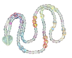 Fluorite, Tiny Heart Accents, Small Clear Lt Green Heart Pendant Mini Mala
