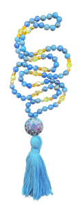 Azurite, Czech & India Glass Accents, Yellow/Green/Blue Tassel