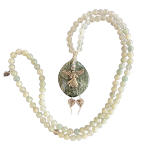 Moonstone, Blue Green Aquamarine, Seraphinite Pendant, Angel & Heart Charms