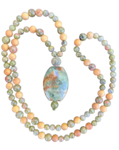 Unakite, Sandalwood, Unakite Guru & Pendant