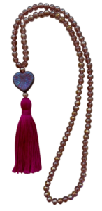 Violet Topaz, Czech Glass Heart Guru, Magenta Tassel